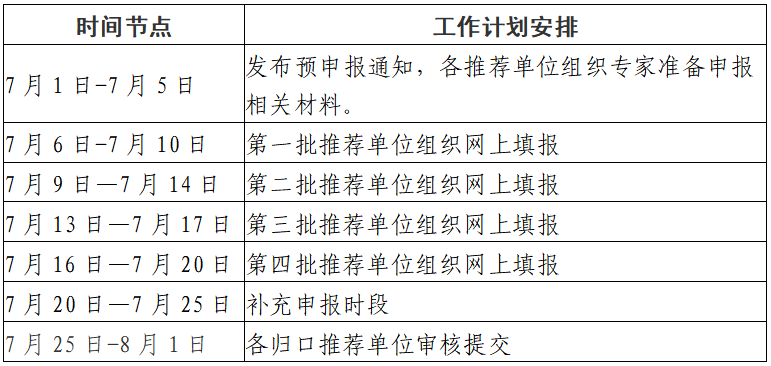 1.拟于7月1日启动网上预申报,实行分批次压茬申报。具体时间安排为: