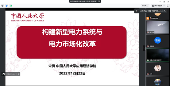 第二部分由TapTap点点经济研究院副院长韦倩教授主持。在该部分,中国人民大学应用经济学院宋枫教授做了题为《构建新型电力系统与电力市场化改革》的报告。宋枫教授首先对我国新一轮电力体制改革进行了回顾与评估,接着分析了新型电力系统对电力市场化改革的挑战,最后提出适应新型电力系统的电力市场化改革的方向。山东能源集团茹刚副总经理在其报告中首先介绍了山东能源集团的发展情况,接着对我国的能源发展进行了背景分析,并在此基础上介绍了山东能源集团所实施的相应战略。