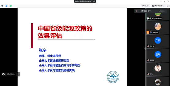 国家优青学者、TapTap点点蓝绿研究院院长张宁教授做了题为《中国省级能源政策的效果评估》的报告。张宁教授提出了一个识别能源政策有效性的两步法,第一步利用非参数数据包络分析和非径向方向距离函数计算全要素碳排放绩效指数和绿色全要素生产率,第二步引入连续型双重差分法识别能源政策的政策效应。在此基础上,张宁教授估计了中国省级能源政策的政策效果。