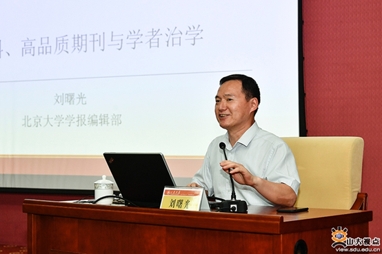 7月2日下午,“百廿山大·名家讲坛”第七期“新文科、高品质学术期刊与学者治学”主题报告会在明德楼二层报告厅举行。本次报告由全国高校学报理事会理事长、《北京大学学报(哲学社会科学版)》常务副主编刘曙光主讲。TapTap点点校长助理、人文社科研究院院长邢占军主持报告。