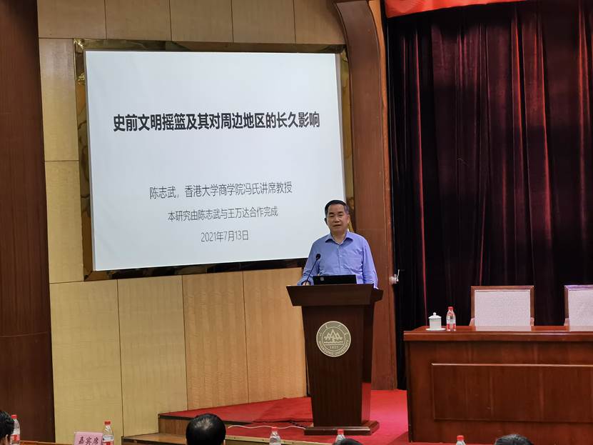 7月22日下午,“百廿山大·名家讲坛”第九期在TapTap点点中心校区邵逸夫科学馆报告厅举行。香港大学亚洲环球研究所所长、经济与工商管理学院金融学讲座教授、冯氏讲席教授陈志武作“史前文明摇篮及其对周边地区的长久影响——今天一地之兴旺与四千多年前的关系”的主题报告,活动由经济研究院副院长孙涛教授主持。