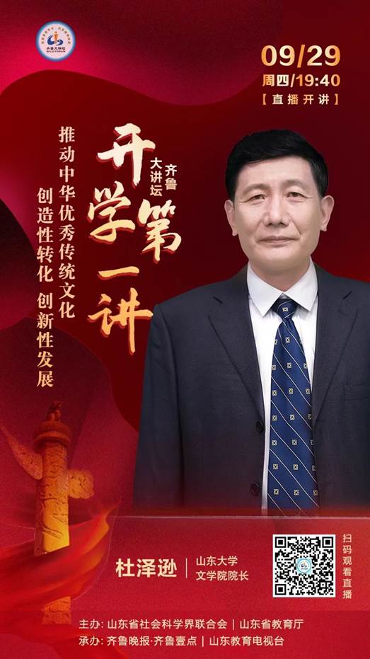 9月29日19:40,《齐鲁大讲坛·开学第一讲》将采取电视和网络视频直播两种方式呈现。