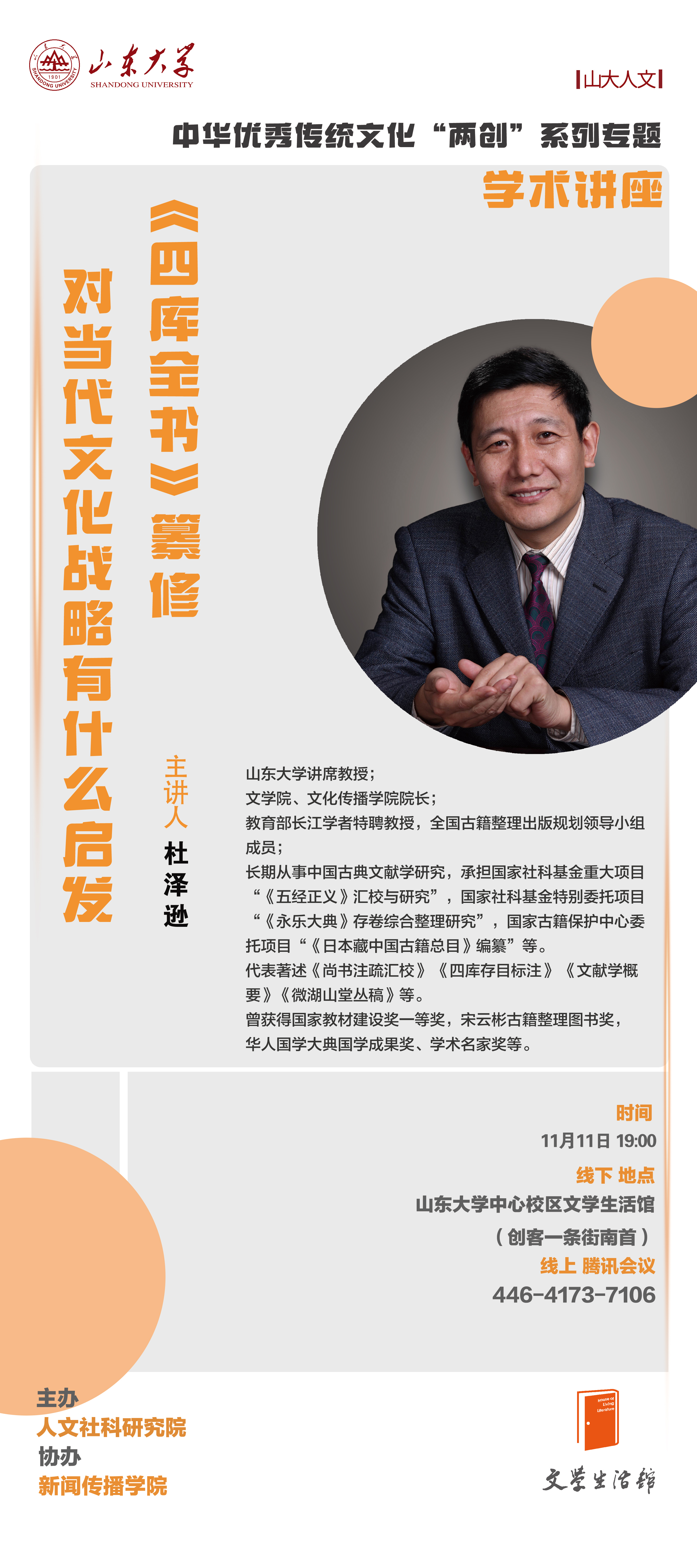 “两创”系列专题学术讲座第八讲:《四库全书》纂修对当代文化战略有什么启发