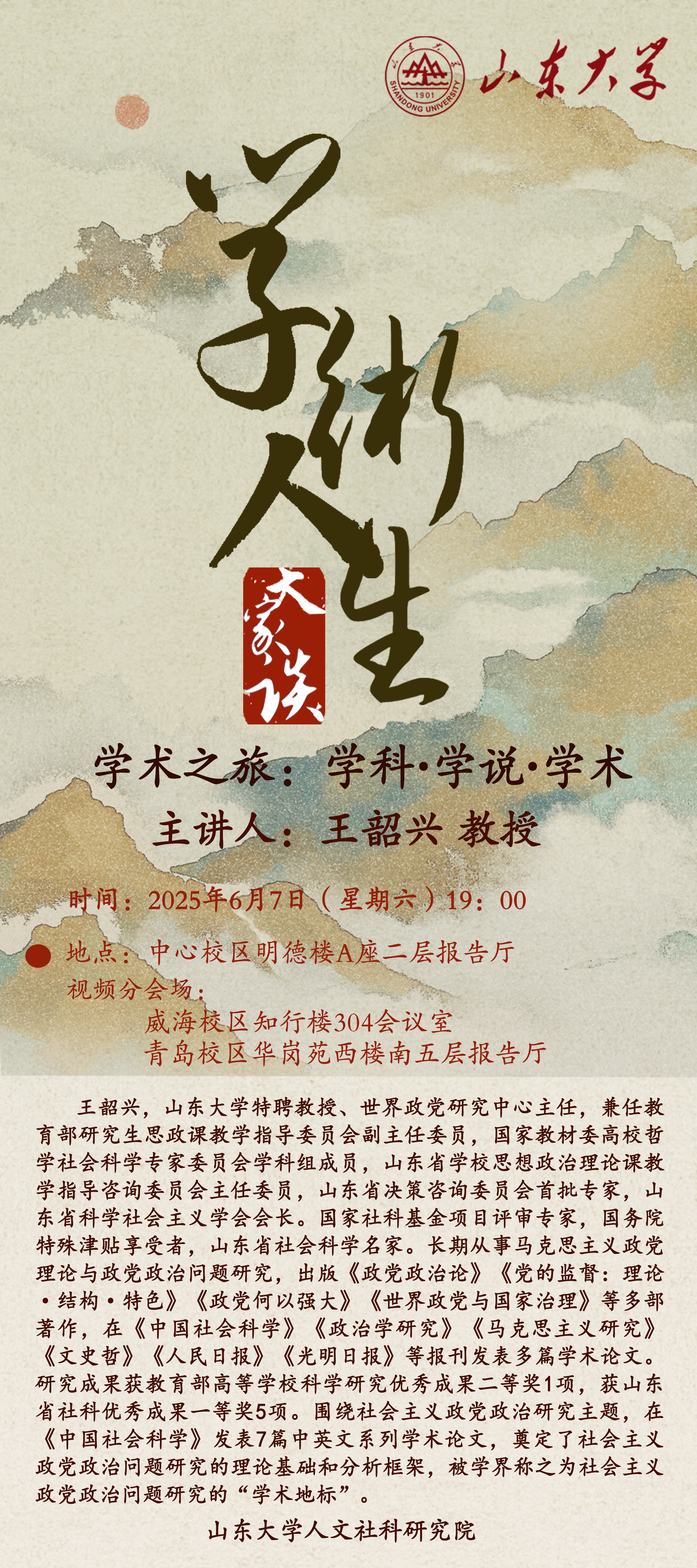 “学术人生大家谈”学术活动第四期:《学术之旅:学科·学说·学术》
