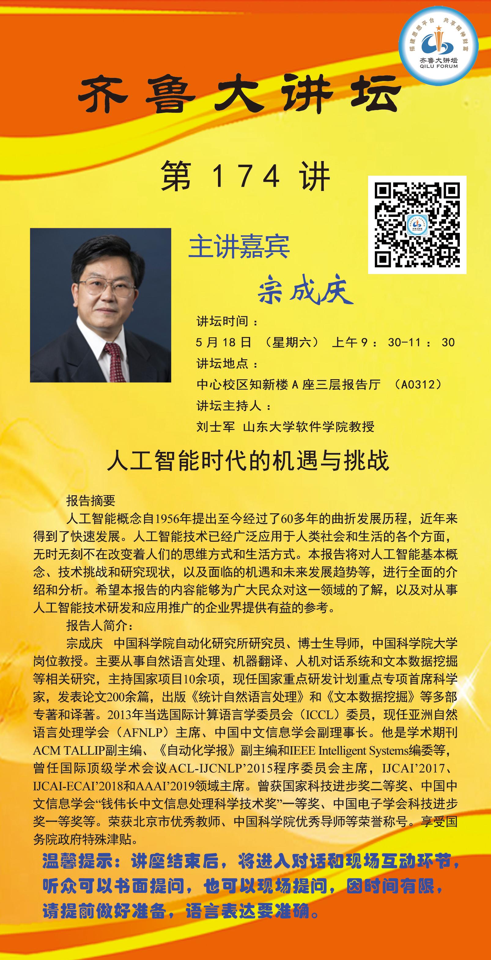 齐鲁大讲坛第174讲:人工智能时代的机遇与挑战