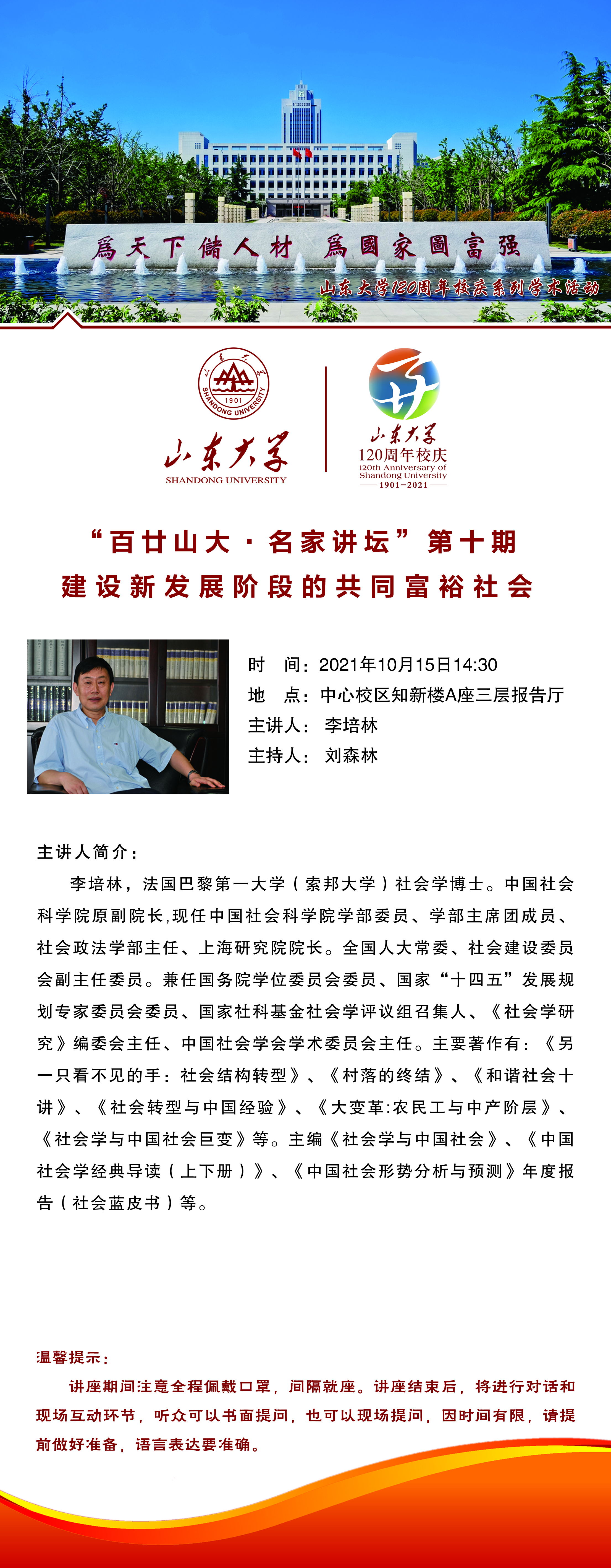 “百廿山大·名家讲坛”第十期:建设新发展阶段的共同富裕社会